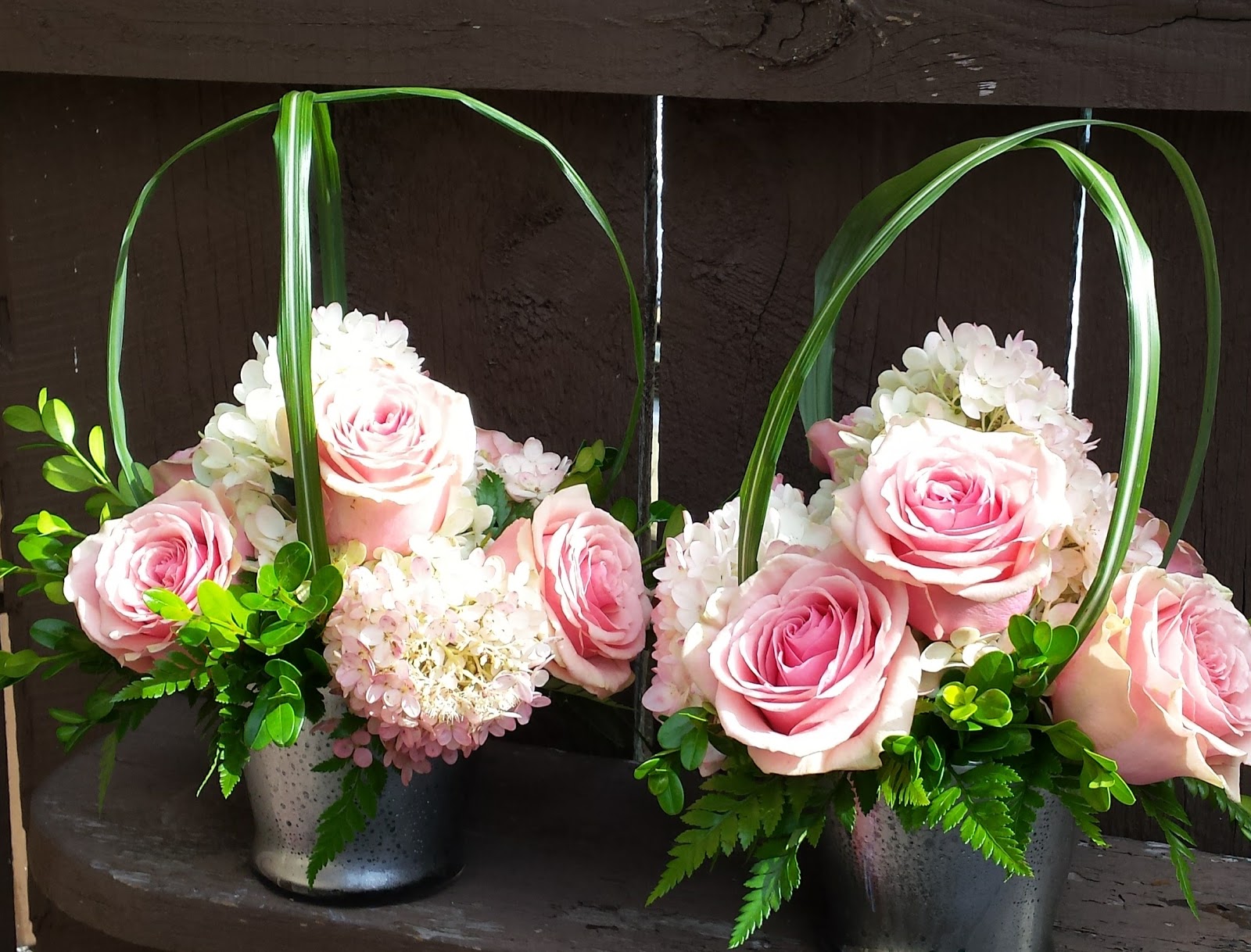Pretty pinks hydrangea with fragrant roses (Geraldine)